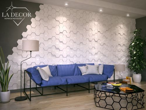 Panel Ścienny 3D LA DECOR® ABEILLE i jego niesamowicie niebanalna faktura, idealnie konweniują z nowoczesnym designem. Charakterystyczne kształty plastrów miodu, dodają wnętrzom oryginalnego charakteru. Kompozyt, z którego zostały wykonane Panele Ścienne 3D ABEILLE LA DECOR, to Najwyższej Jakości materiał, który daje gwarancję wytrzymałości i odporności oraz umożliwia ich samodzielny montaż, a w następstwie pokrycie paneli Naszym impregnatem specjalistycznym (głebokopenetrującycm strukturę panelu) lub farbą. Panele 3D ABEILLE posiadają oryginalny wzór plastrów miodu.